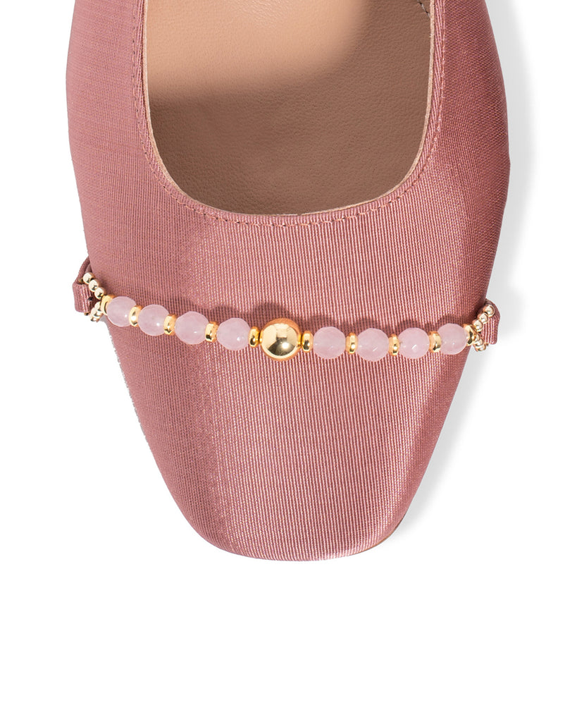 Romantica e raffinata, impreziosita da accessori in giada, realizzati e montati a mano.