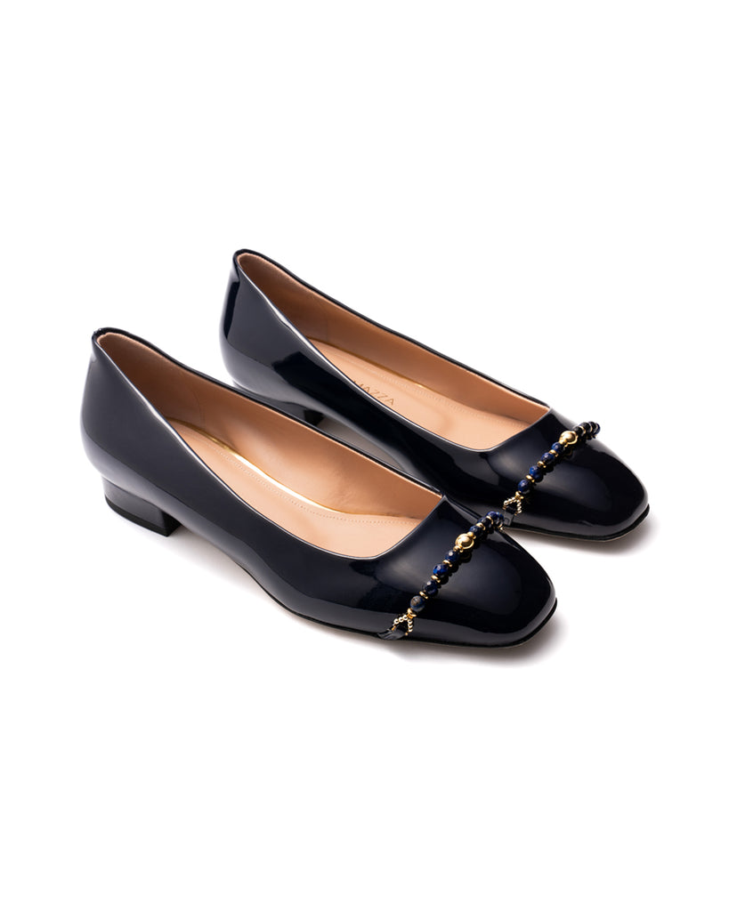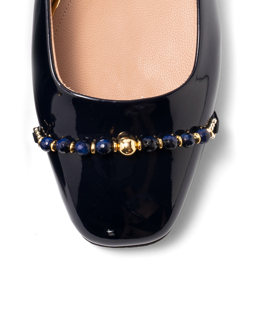 Playful and elegant, it is embellished with accessories with precious natural stones, handmade.