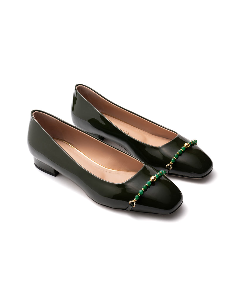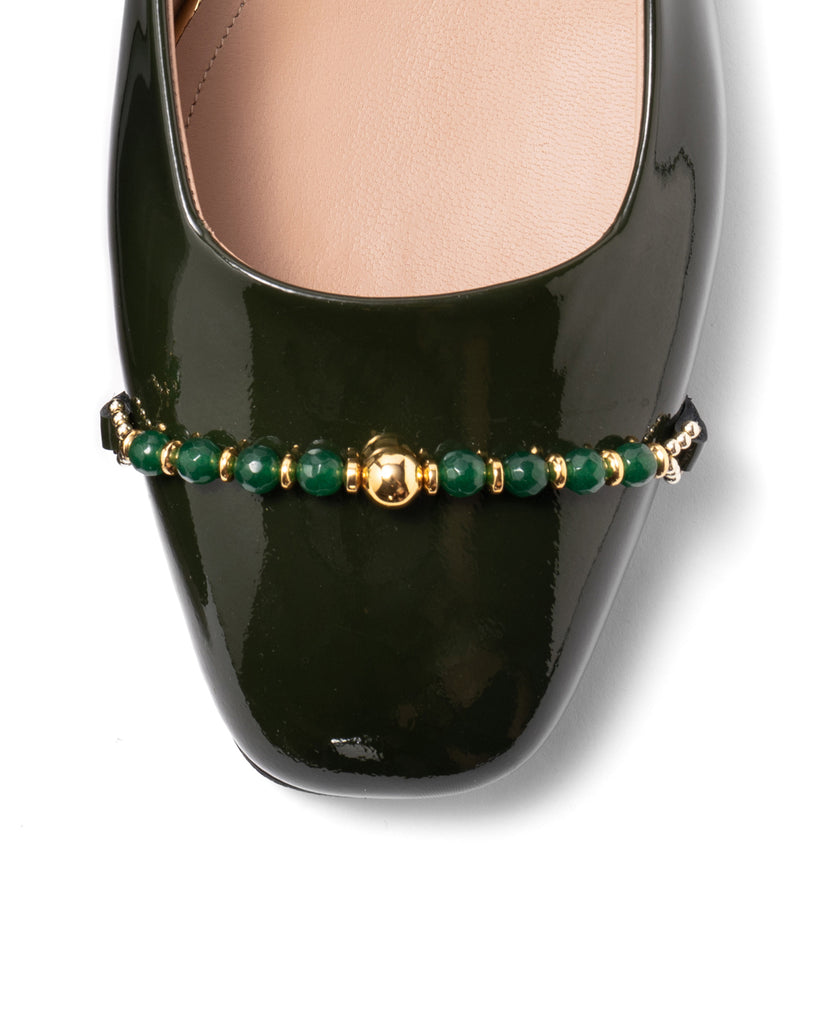 Playful and elegant, it is embellished with accessories with precious natural stones, handmade.