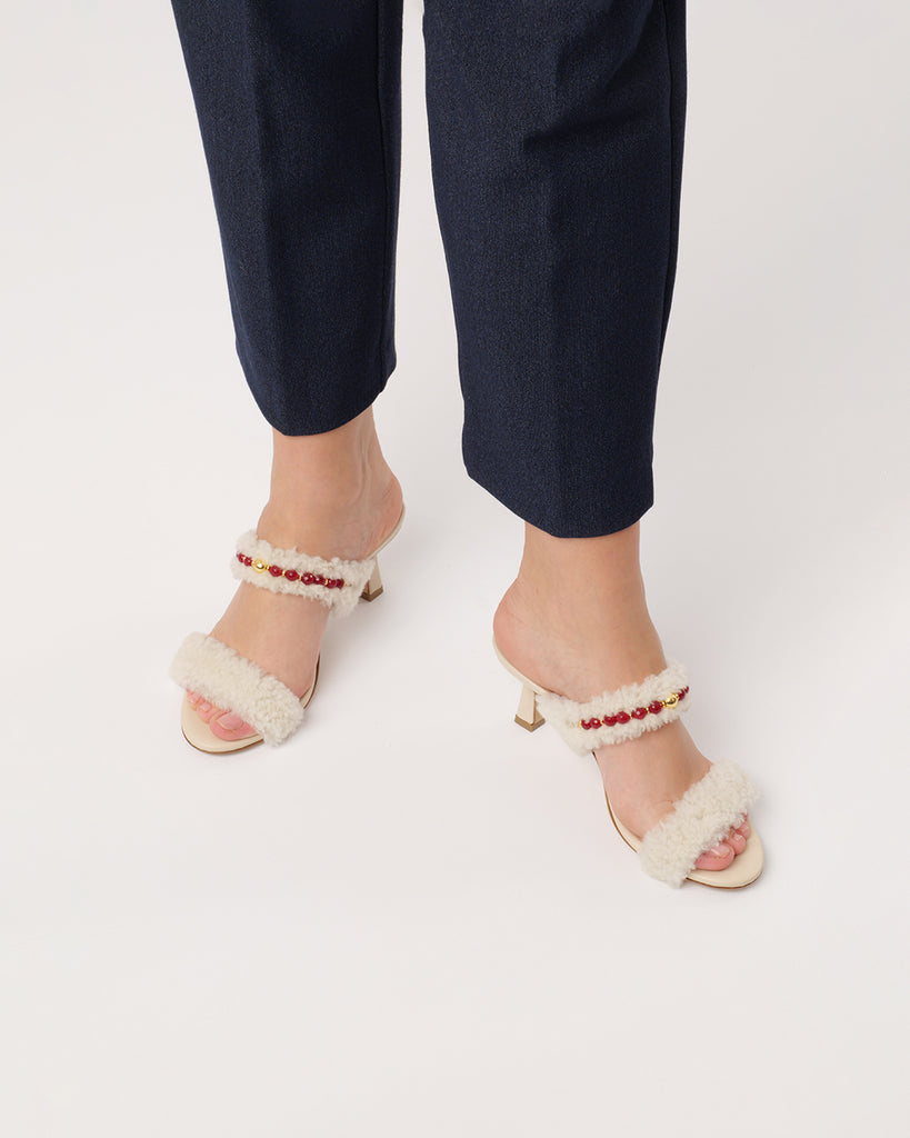 Napoletana mule sandal · ivory sheepskin